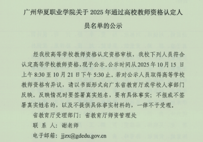 2025-09-22 11:42:00.0广州华夏职业学院关于2025年职业教育高级“双师型”教师认定结果的公示