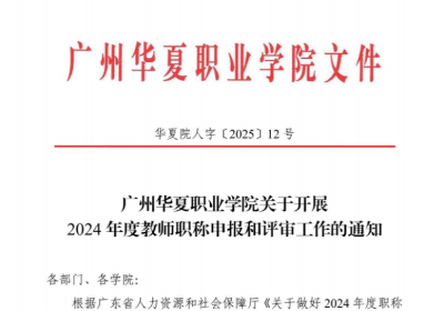 华夏院人字〔2025〕12号 广州华夏职业学院关于开展2024年度教师职称申报和评审工作的通知